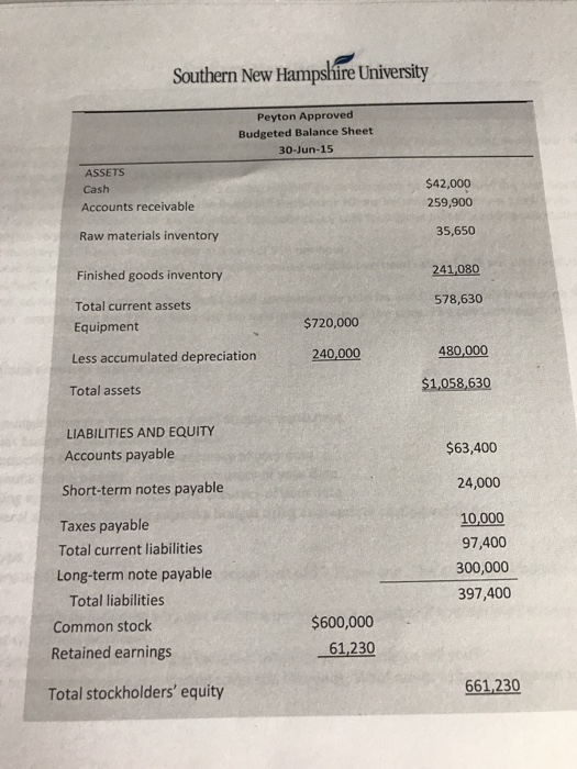 Exemplary Peyton Approved Balance Sheet